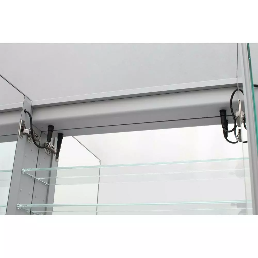 - 5 mm silver mirrored glass, 90° soft close hinges, 8 mm glass shelves