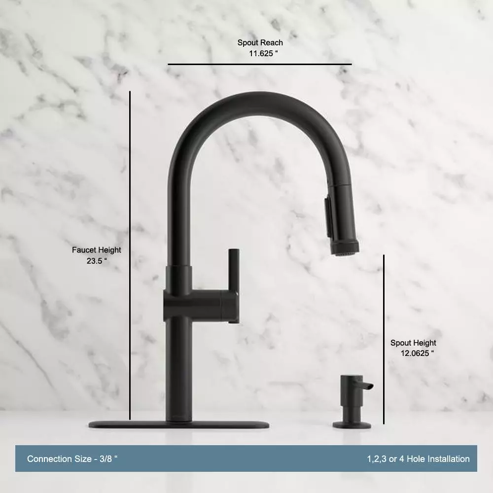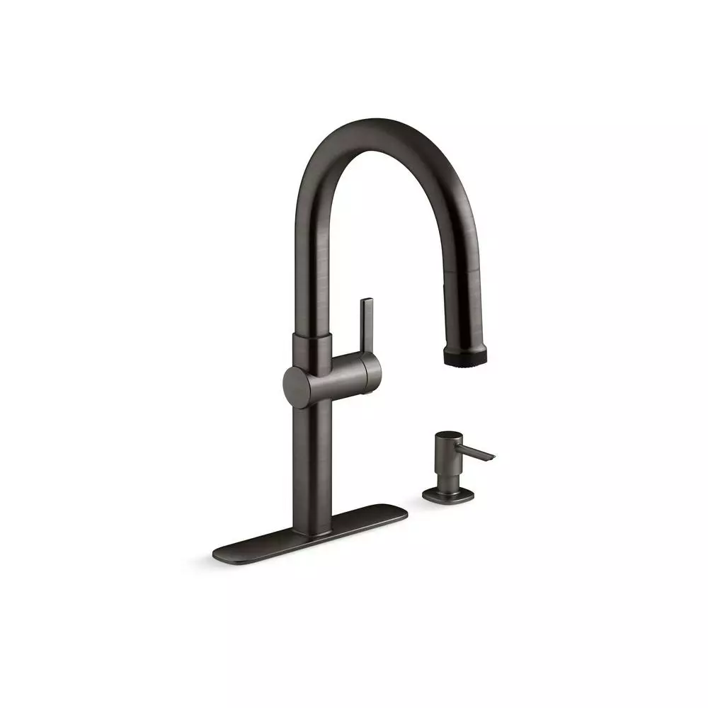 With clean, contemporary lines, the Rune pull-down kitchen faucet has a substantial feel that exudes durability. A single faucet handle adds to its streamlined look. Use the spray head’s toggle control to switch between stream and powerful Sweep spray for fast, efficient cleanup. This faucet includes a top-accessible soap/lotion dispenser that allows for easy refills.