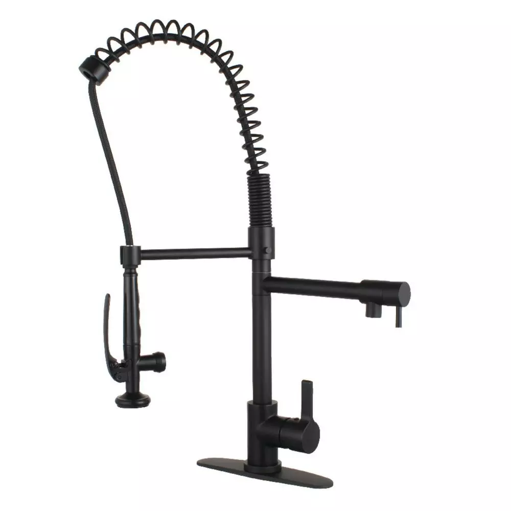 Transcend your home into a futuristic utopia with this faucet’s brilliant craftsmanship and modern, curved spout with ergonomic levers. Designed for optimum versatility and functionality, the multiple spray settings and extendable spout of this pre-rinse faucet make for an enjoyable cleaning experience. Additionally, the rotating swivel spout leaves no area of the sink untouched as the industrial look of the exposed spring provides residential function. The oil rubbed bronze finish will also provide a long lasting and warm touch to your kitchen ensemble. Matching accessories are available for use.