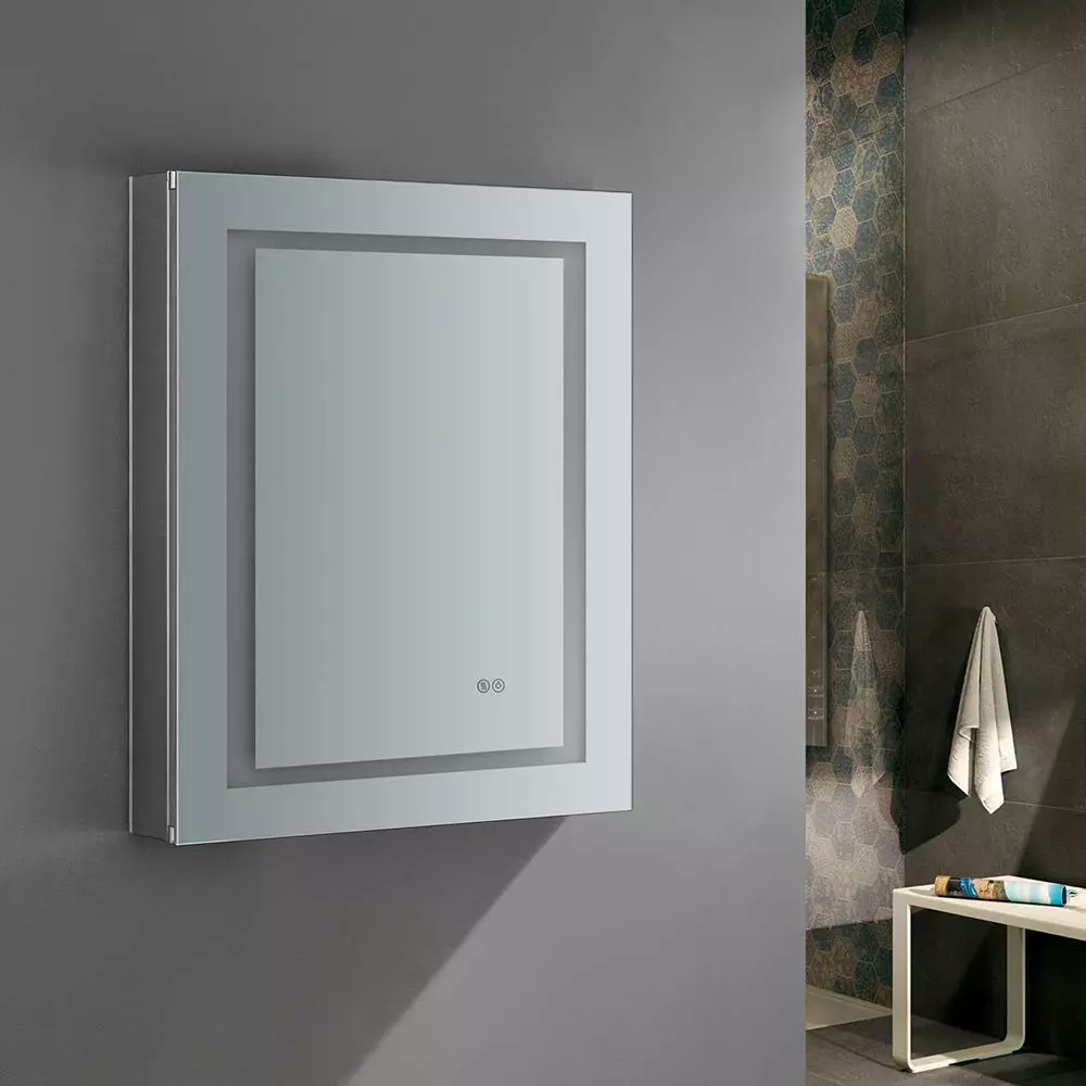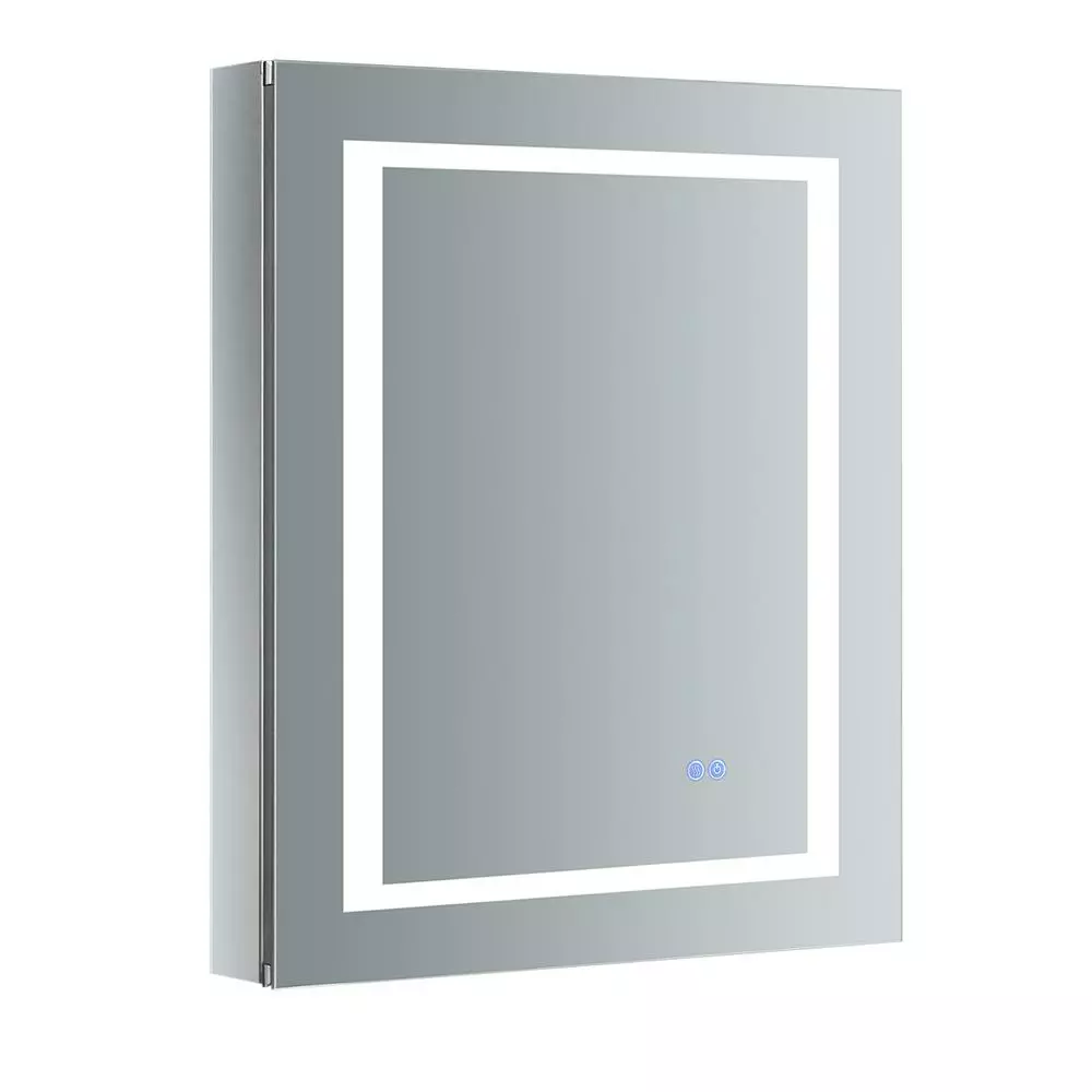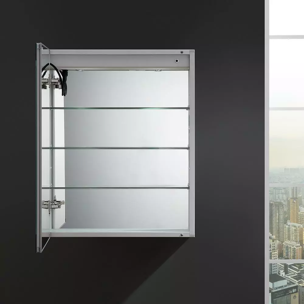 The Fresca Bathroom Medicine Cabinet comes with everything you need to create an elegant and modern bathroom, with every convenience right in front of you. On the outside, its a sophisticated mirrored medicine cabinet with a built-in dimmable surface LED task light which creates an illuminated frame within the mirror. It also has a defogger feature. Inside, there’s an LED light and a handy electrical/USB outlet combo for an electric shaver, toothbrush or other essentials. The interior features 3 adjustable glass shelves and a mirrored back wall. The double-sided mirrored door swings right on 170°, soft-close BLUM hinges. Measuring 24 in. W x 30 in. H x 5 in. D, this medicine cabinet is available in several sizes.