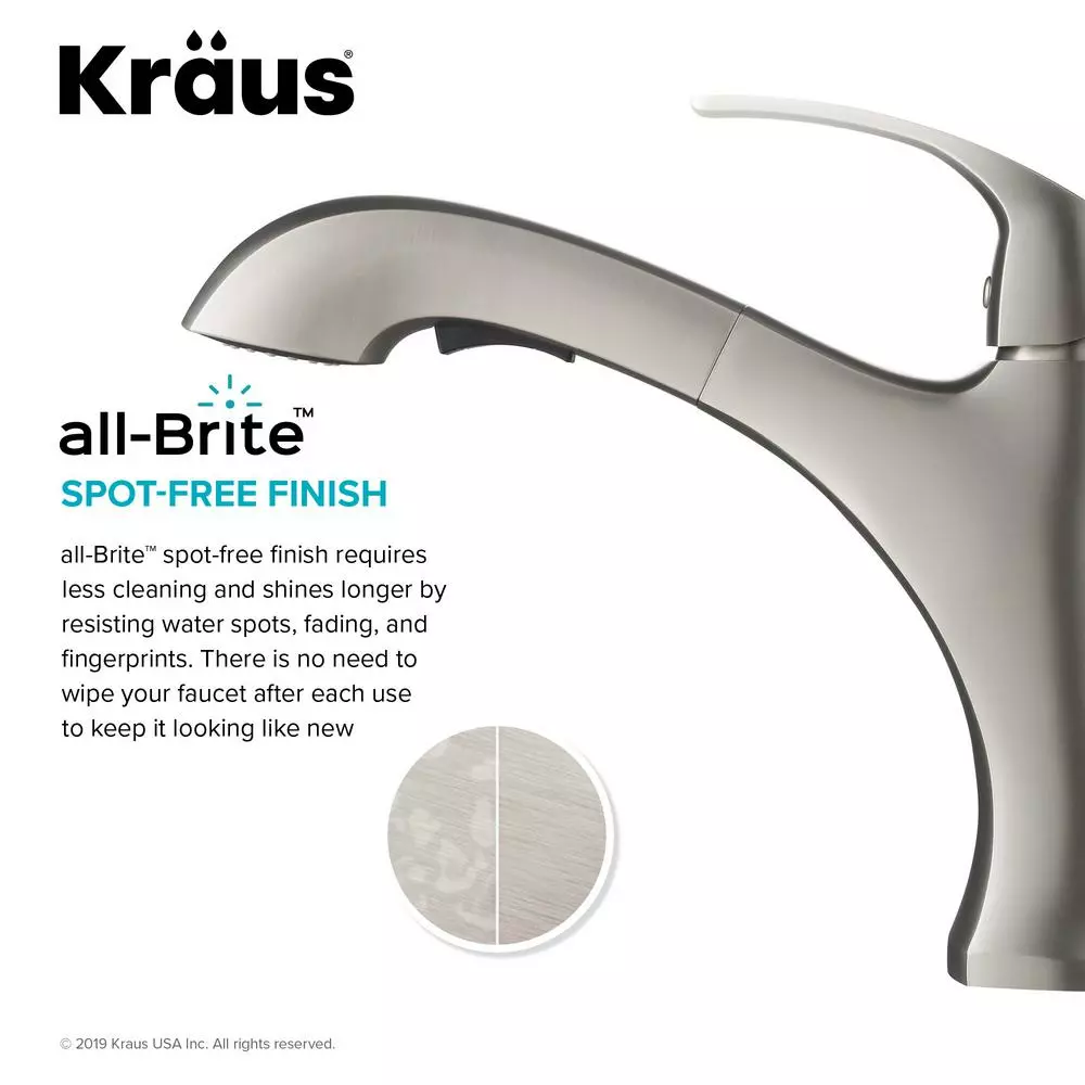 - Spot-free finish: all-Brite spot free stainless steel finish resists water spots and fingerprints for a cleaner looking faucet