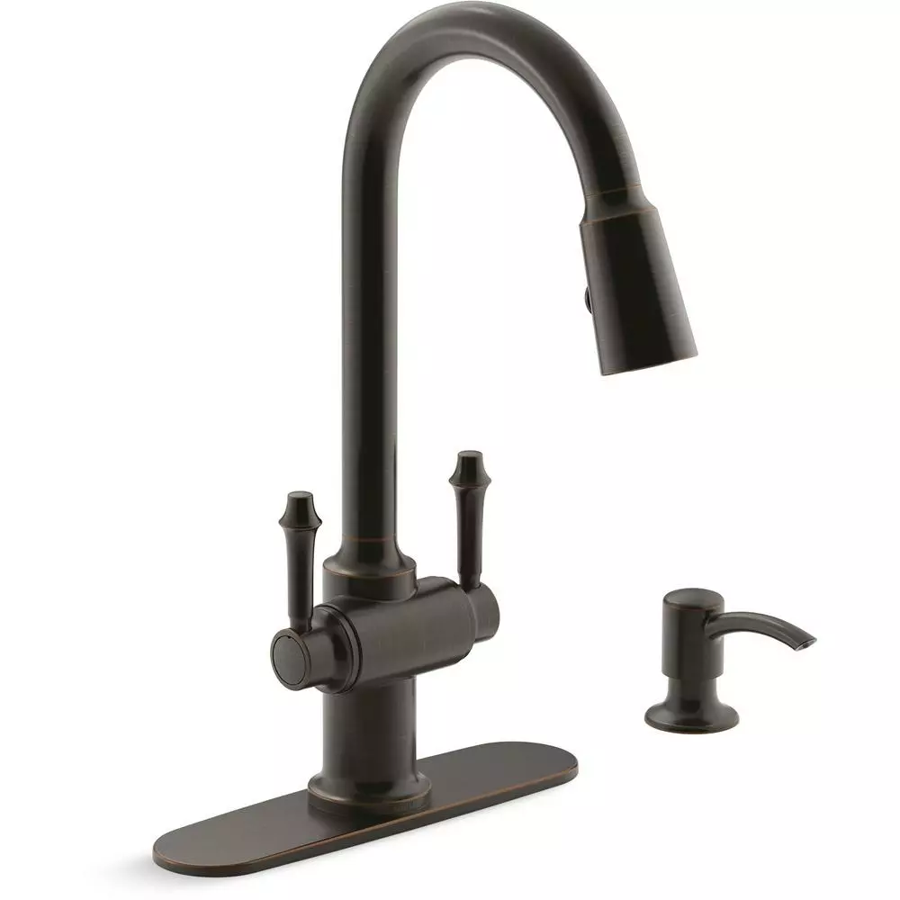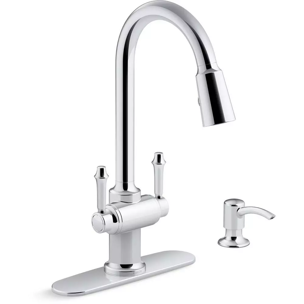 Easy to install and easy to clean, the Thierry pull-down kitchen faucet delivers a softened approach to contemporary style with its smooth, sculpted edges. The dual-spray and high-arch swing spout bring convenient functionality for the busy kitchens. It comes with a lifetime limited warranty.