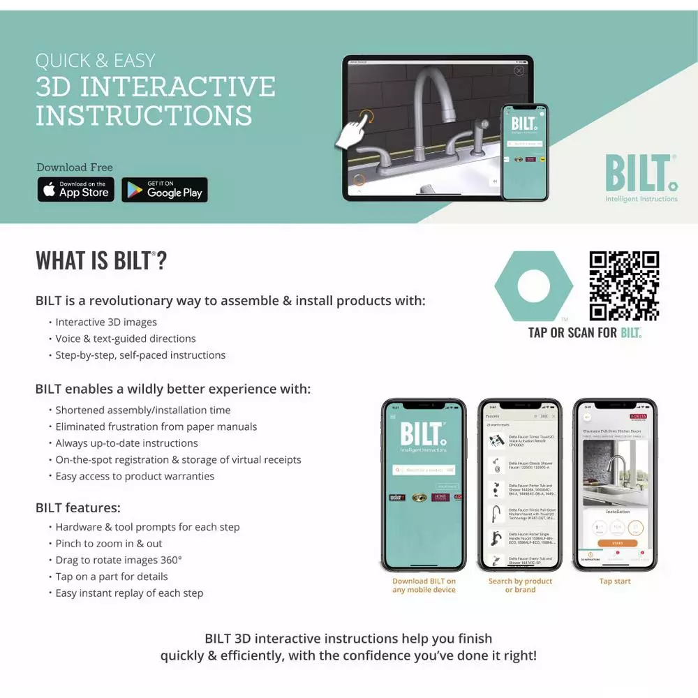 - Faucet can be installed with or without included deck plate (escutcheon)