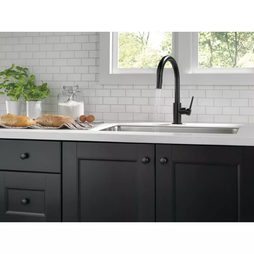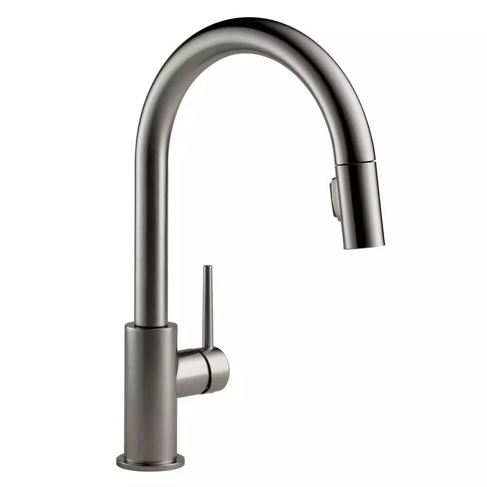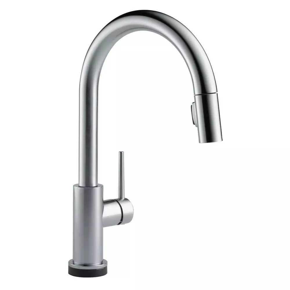 The pull-down spray wand comes free with a gentle tug and gives you total flexibility. The hose extends and retracts without friction points, fed by gravity. As you raise the wand to dock it, the magnet embedded in the spout pulls the wand precisely into place. So, unlike other pull-downs that tend to droop over time, MagnaTite keeps your pull-down faucet looking picture-perfect. Delta’s exclusive DIAMOND seal technology uses a valve with a tough diamond coating. InnoFlex PEX waterways keep water inside the faucet out of contact with potential metal contaminants. This powerful combination brings you a faucet built to last up to 5 million uses. Only Delta faucets are equipped with Touch-Clean soft, rubber spray holes that allow you to easily wipe away calcium and lime build-up with the touch of a finger. An optional escutcheon (sold separately) completes the ensemble for a more finished look.