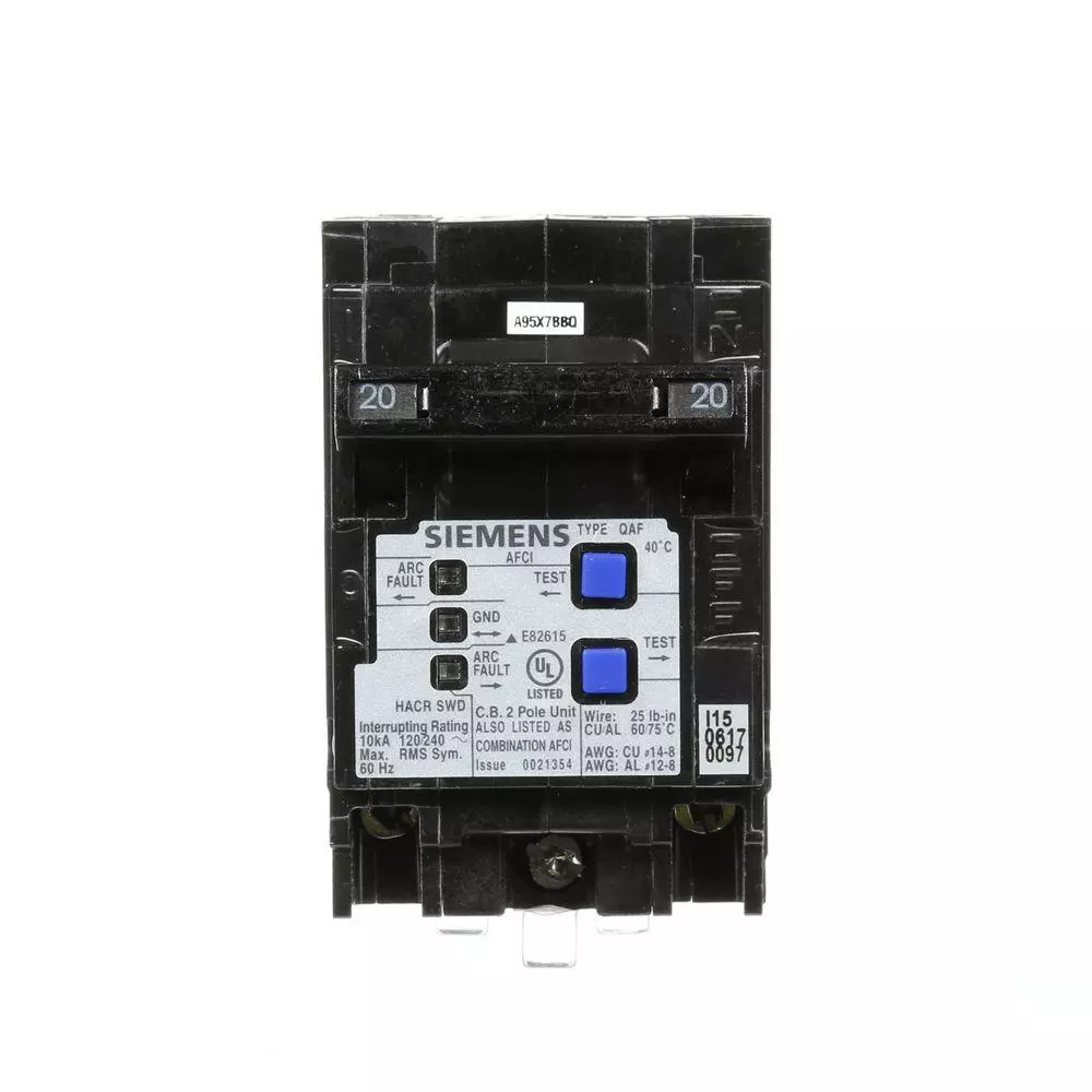 The Siemens 20 Amp 2 in. Double-Pole Combination AFCI Circuit Breaker is intended to mitigate the effects of arcing faults by de-energizing the circuit when an arc-fault is detected. The breaker is designed to protect against line-to-ground arcs, line-to-neutral arcs and series arcs to help protect your home from an electrical fire. AFCI’s detect arcing faults (an unintentional arcing condition in a circuit) that standard circuit breakers are unable to detect. The device is intended to mitigate the effects of arcing faults by functioning to de-energize the circuit when an arc-fault is detected.