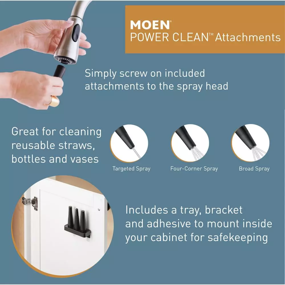- PowerClean individual threaded attachments are included, engineered to provide focused cleaning solutions with 3-unique spray settings: target spray, 4-corner spray and broad spray