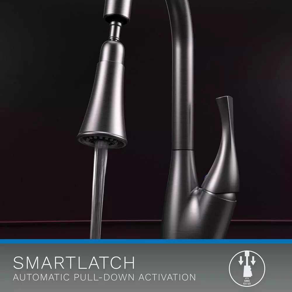 - Easy movement and secure docking of the pull-down spray head