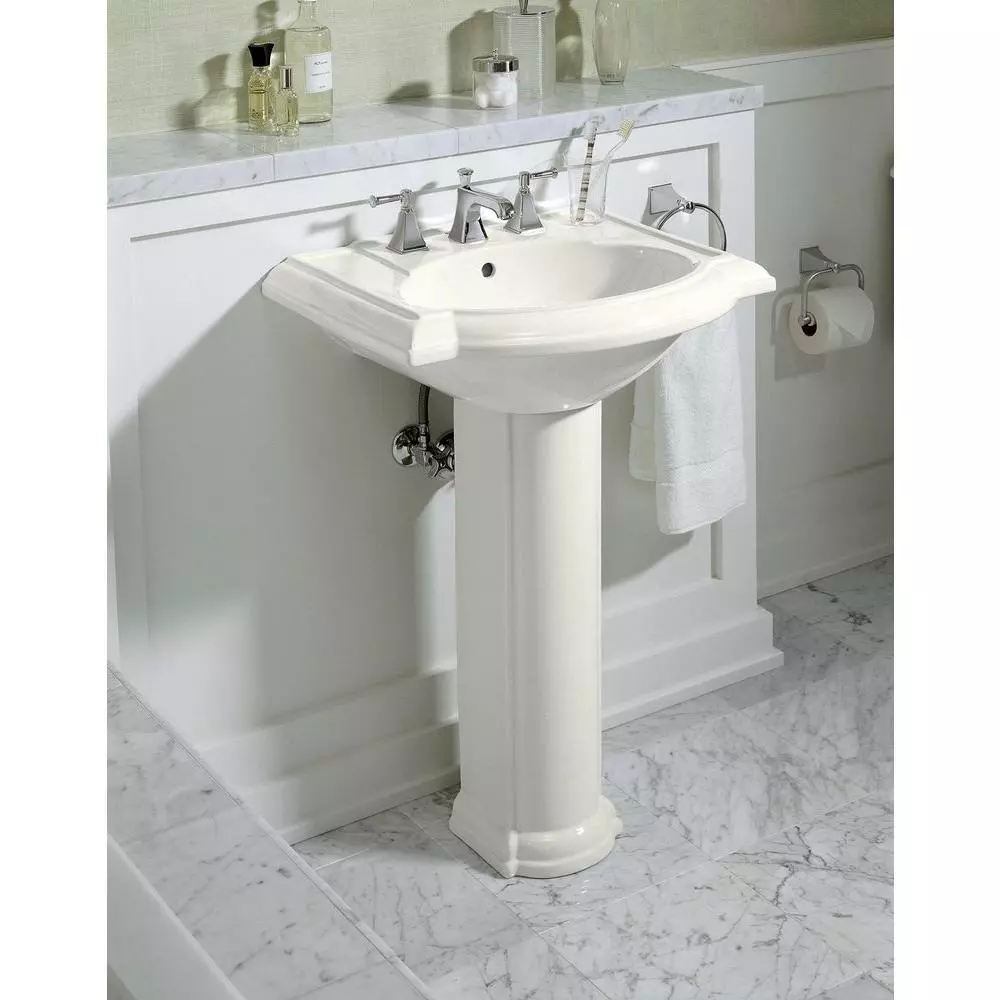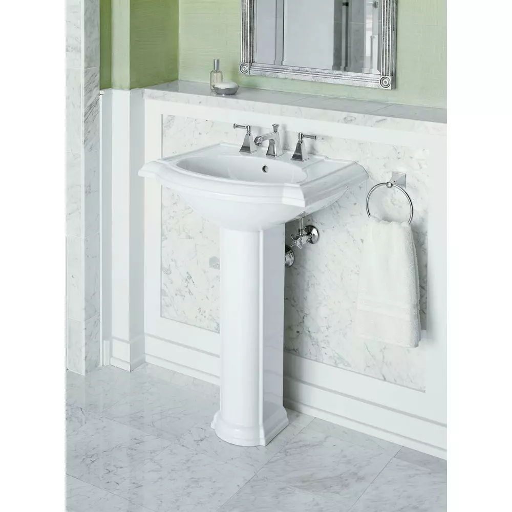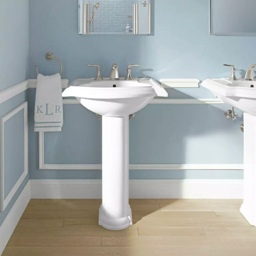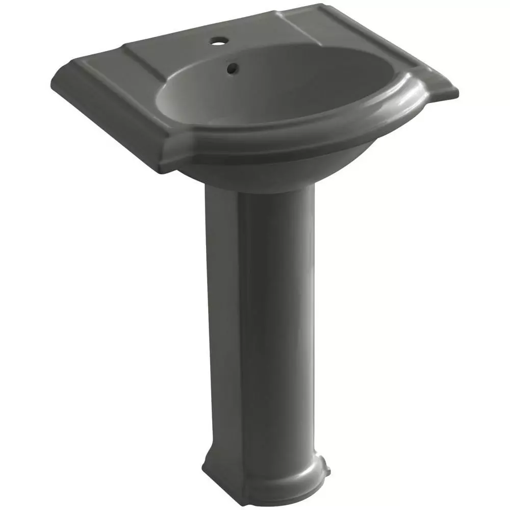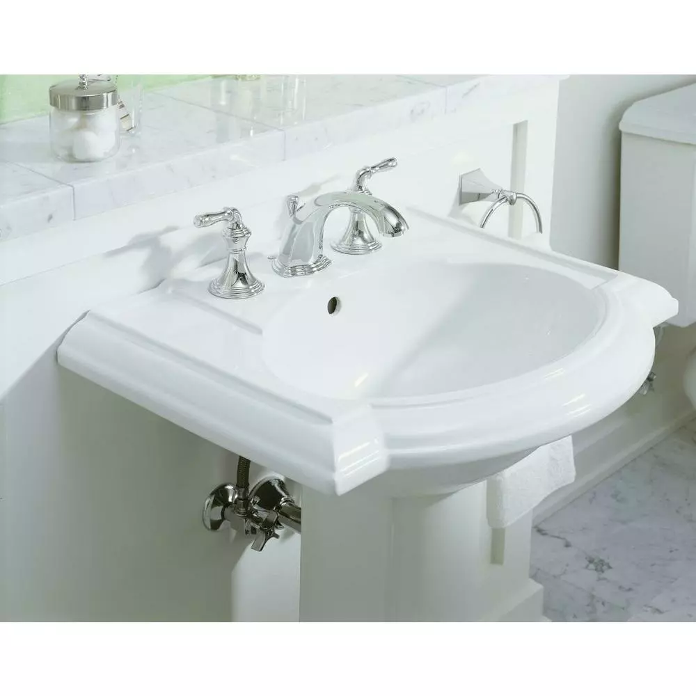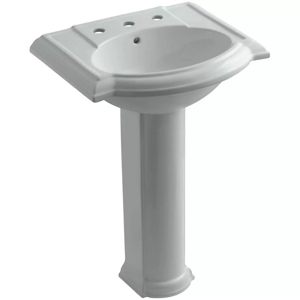 Reminiscent of a bygone era, the molded edges and subtle curves of the Devonshire pedestal sink add distinctive visual impact to your bathroom design. It comes in a variety of KOHLER colors to match your bathroom decor. It is available with single-hole, 4 in. centerset, and 8 in. widespread faucet hole drilling.