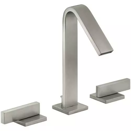 Two-handle widespread lavatory faucet for 8-in to 16-in centers features unique recessed valve installation