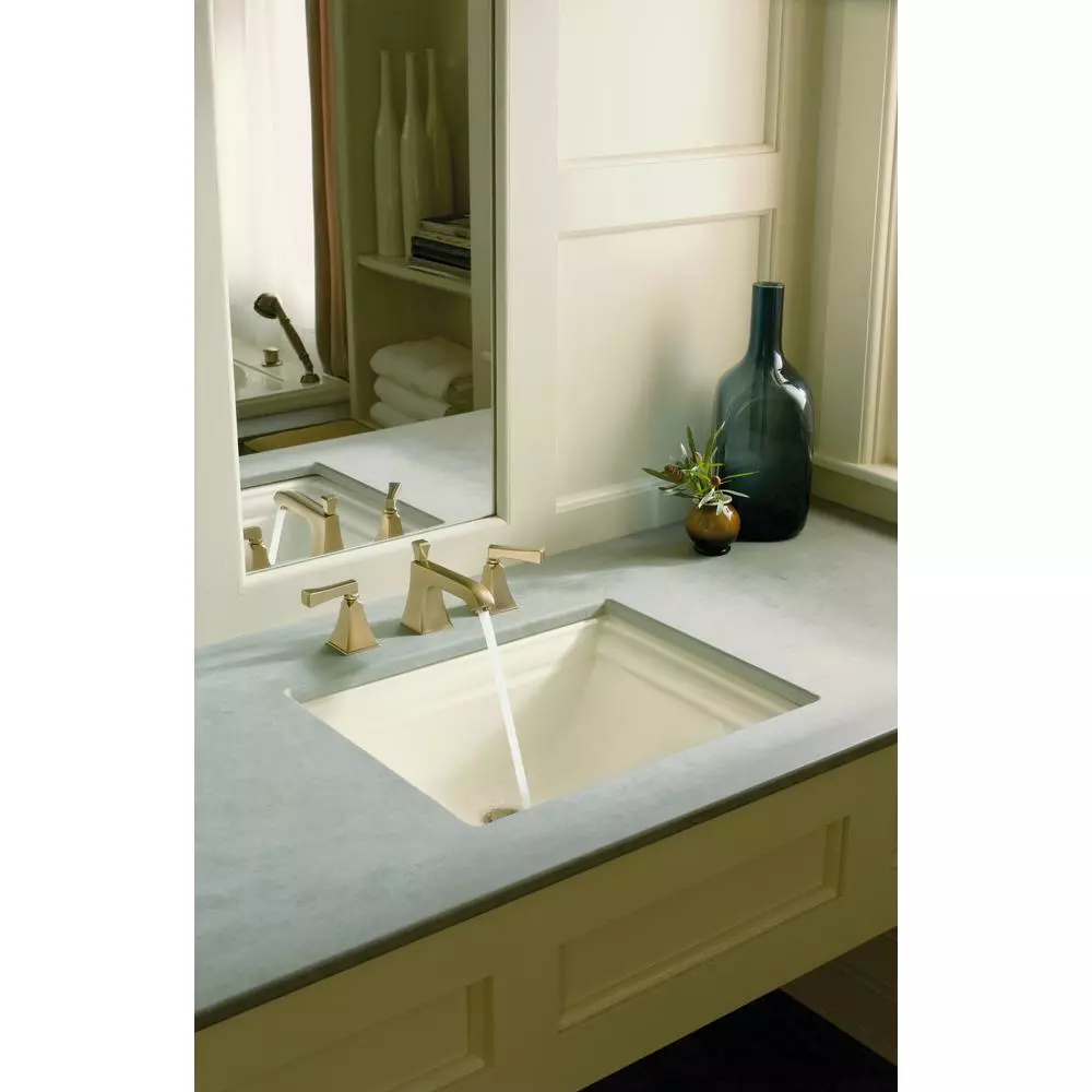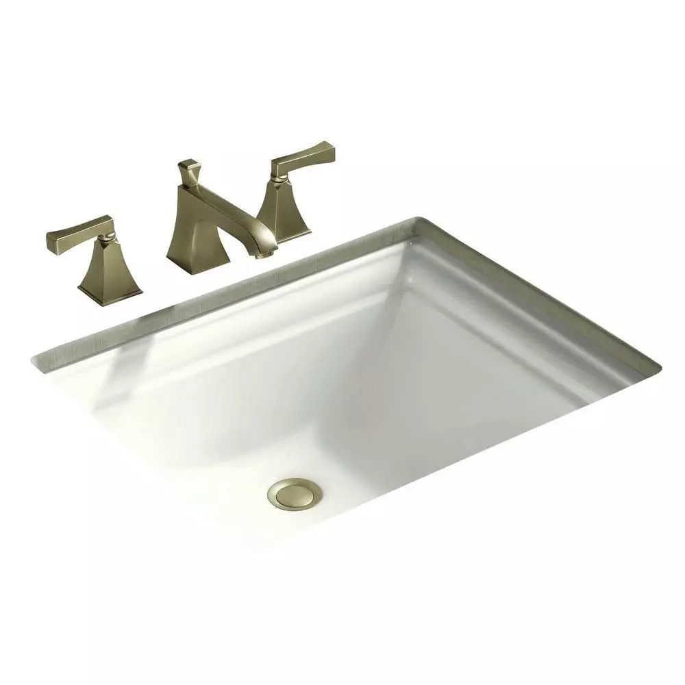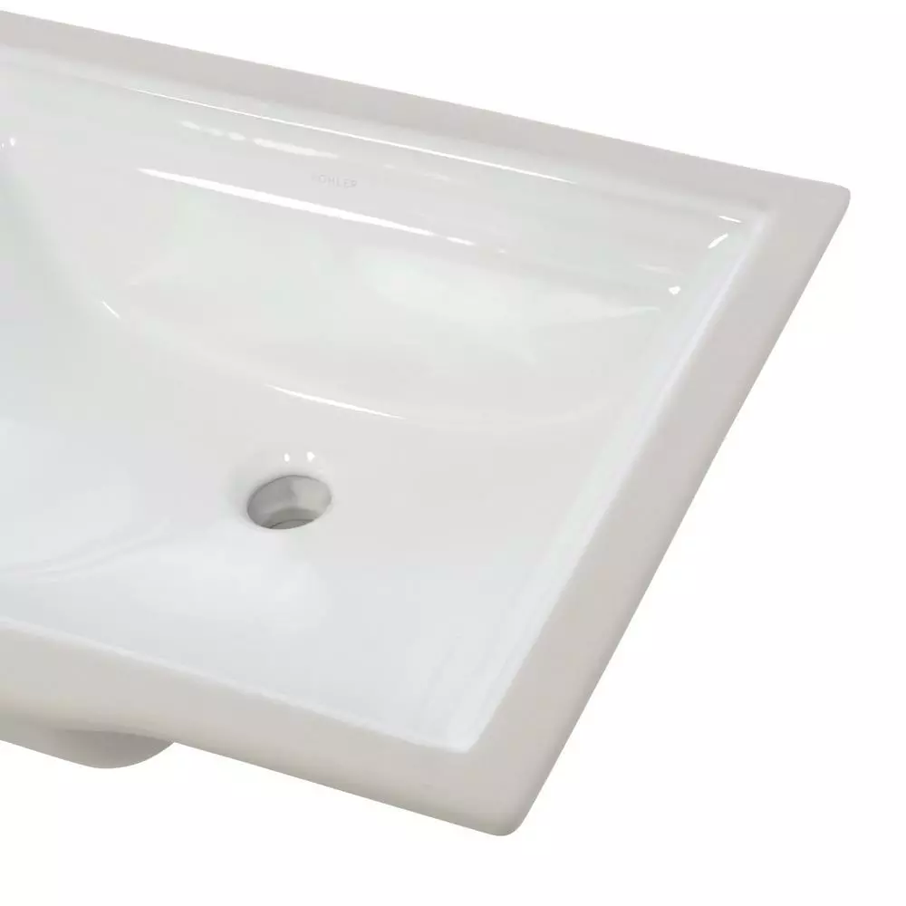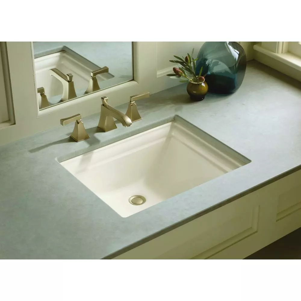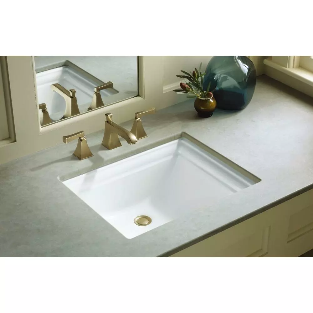 The KOHLER Memoirs Undercounter Bathroom Sink features a rectangular shape to help offer plenty of space. Its vitreous china construction is designed for durability and the white finish complements a wide variety of bathroom decorating schemes. There are no faucet hole drillings, thus allowing you to customize your bath decor with either a wall- or counter-mount faucet to complete the lavatory.