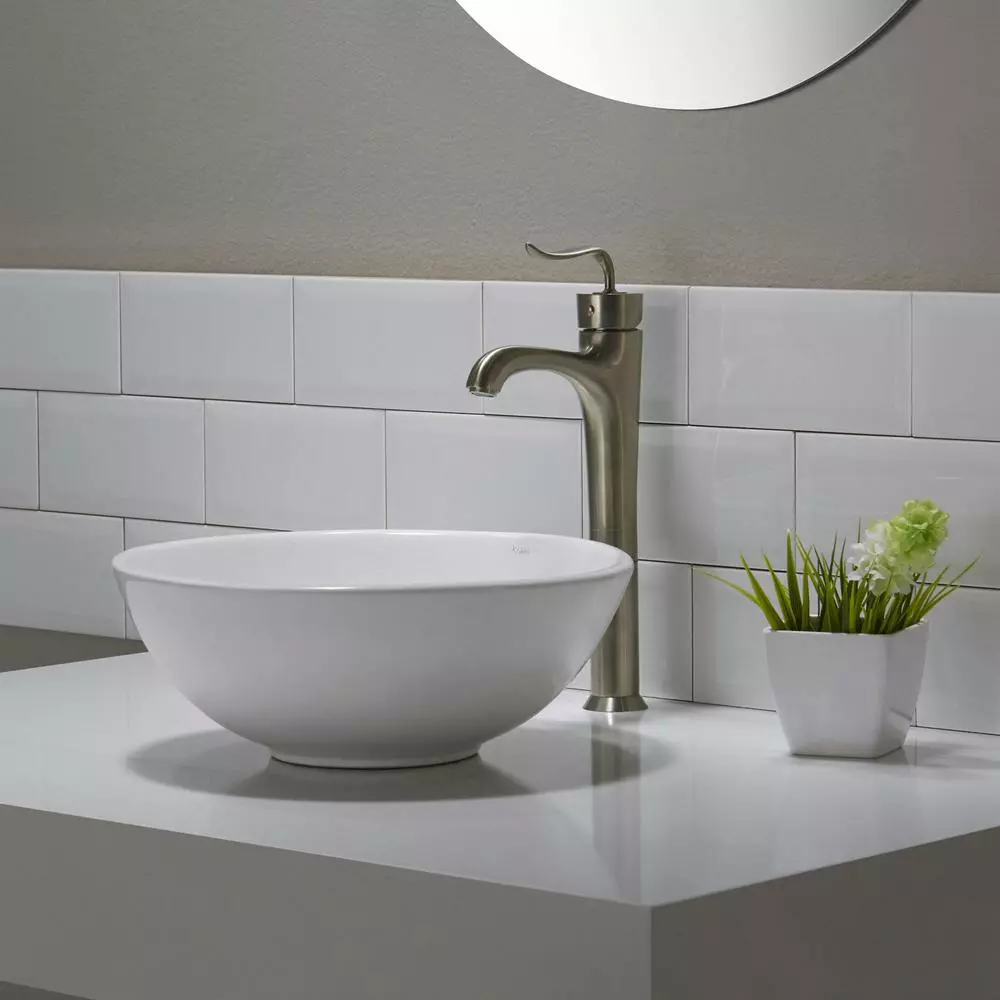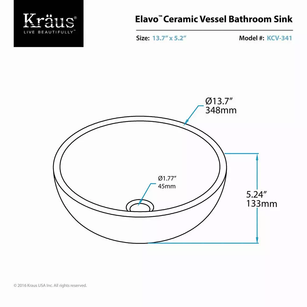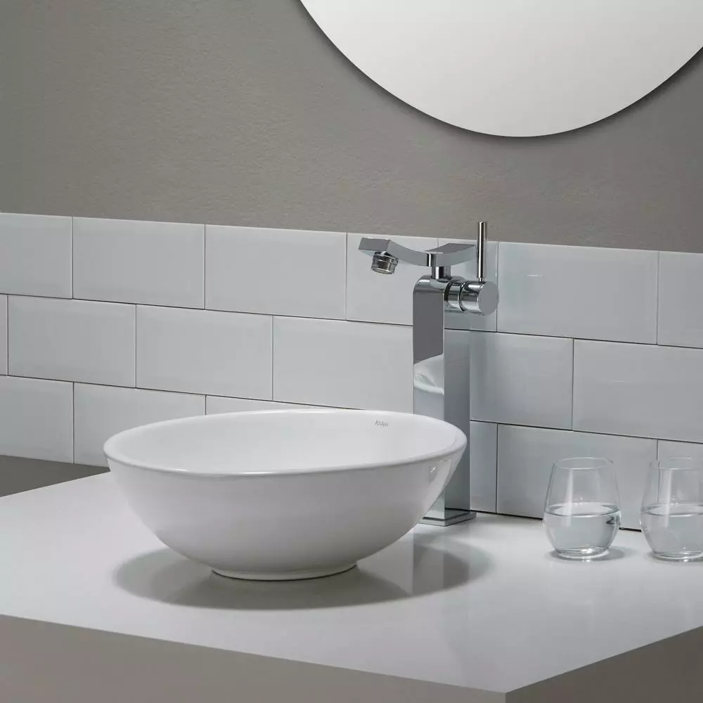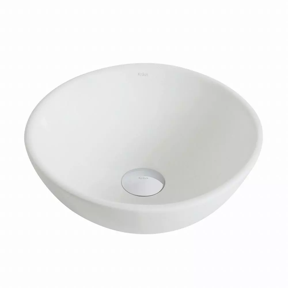 The Elavo Series offers a fresh look for classic white ceramic, with sinks that suit any style, from the traditional to the modern bathroom. This elegant bathroom sink has a streamlined shape and a smooth, non-porous surface with premium baked-on glaze for a high-gloss finish. Simply wipe with a damp cloth to keep your bathroom beautiful with minimal maintenance. Above-counter mounting opens up a world of bathroom design possibilities while maximizing available space on the bathroom vanity. Pair this Kraus sink with any vessel sink faucet for easy coordination and sleek style. Brighten up your bathroom with an Elavo Series sink, and experience Kraus Quality.