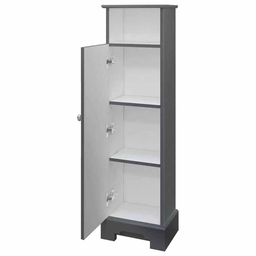 Maximize your storage! The MagickWoods Windsor collection linen cabinet provides decorative storage for towels and favorite toiletries with its open shelf, plus concealed storage for bath items big and small. Available in Matte White and Graphite Gray finishes, Windsor linen cabinets include soft-close door hinges for smooth and quiet use, and are complemented with elegant brushed nickel hardware. Windsor linen cabinets are conveniently pre-assembled and easy to install. Each cabinet features a decorative open toe-kick with the convenience of a recessed panel behind to avoid items rolling under the cabinet, and ease of floor cleaning. From bath towels to bottles of shampoo, lotions and more, store all your bath essentials in one place with this linen cabinet. Windsor makes your bathroom beautiful.