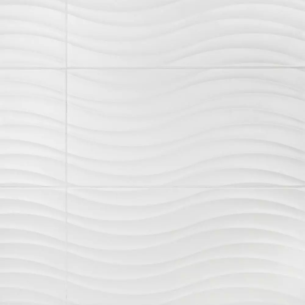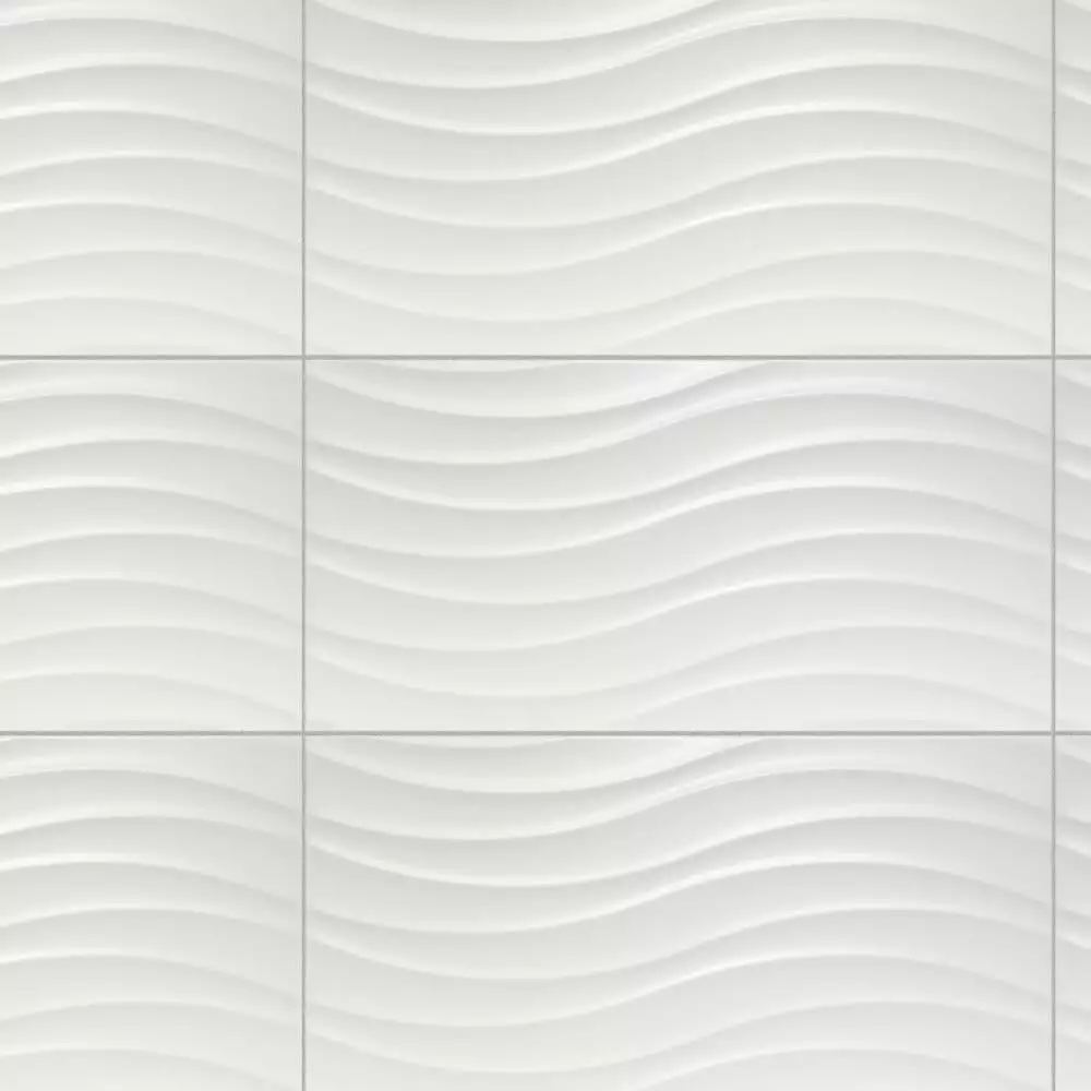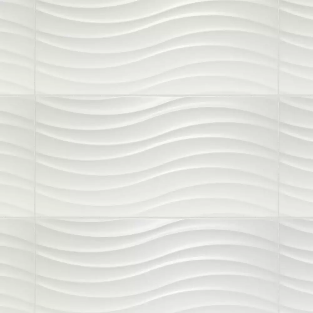 Captivating and soothing waves flow throughout the Merola Tile Silueta Blanco Matte 12-3/8 in. x 24-7/8 in. Ceramic Wall Tile. With a satin finish, this enlarged wall tile has a sweeping, dimensional surface that embodies versatility in design. A creamy pearlescent satin white glaze offers a simplistic color scheme that blends with any door. The wave pattern mimics a rushing current, offering luxurious design that blends seamlessly between tiles for continuity. Intended for interior walls, this tile is great for showers, bathrooms and backsplashes. You can pair this tile with many other products, including ones in the Silueta series, to create your own lavish escape.