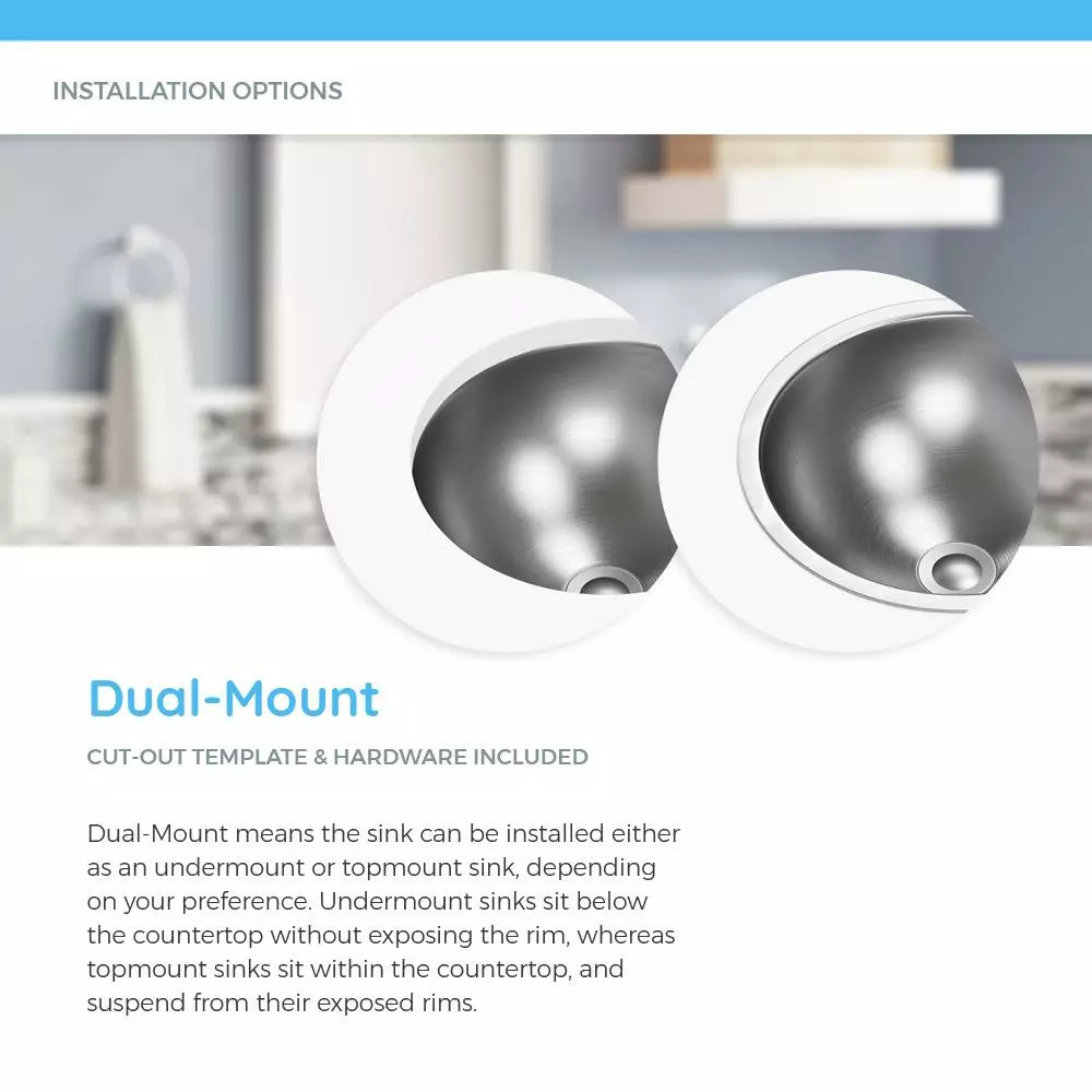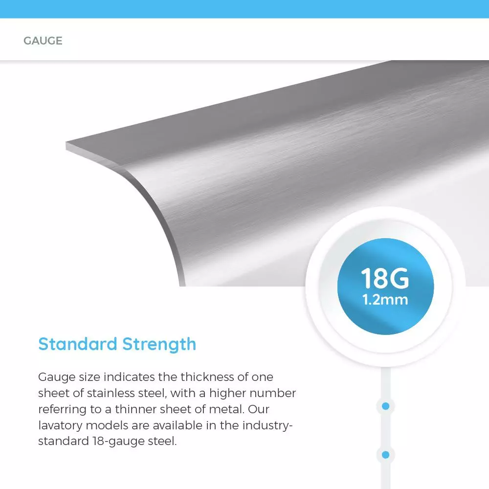 The 1917 stainless steel under mount or top mount vanity sink is made from 304 grade stainless steel and is available in 18 Gauge thickness. The surface has a brushed satin finish to help mask small scratches that occur over time and keep your sink looking beautiful for years. The overall dimensions of the 1917 are 19-1/4 in. x 16-1/4 in. x 7 in. and a 21 in. minimum cabinet size is required. This sink requires a pop-up drain. As always, our stainless steel sinks are covered under a limited lifetime warranty for as long as you own the sink.