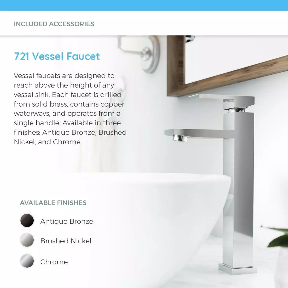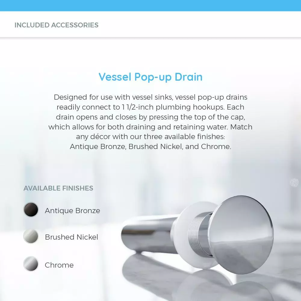 - Ensemble includes: vessel sink, vessel faucet and pop-up drain