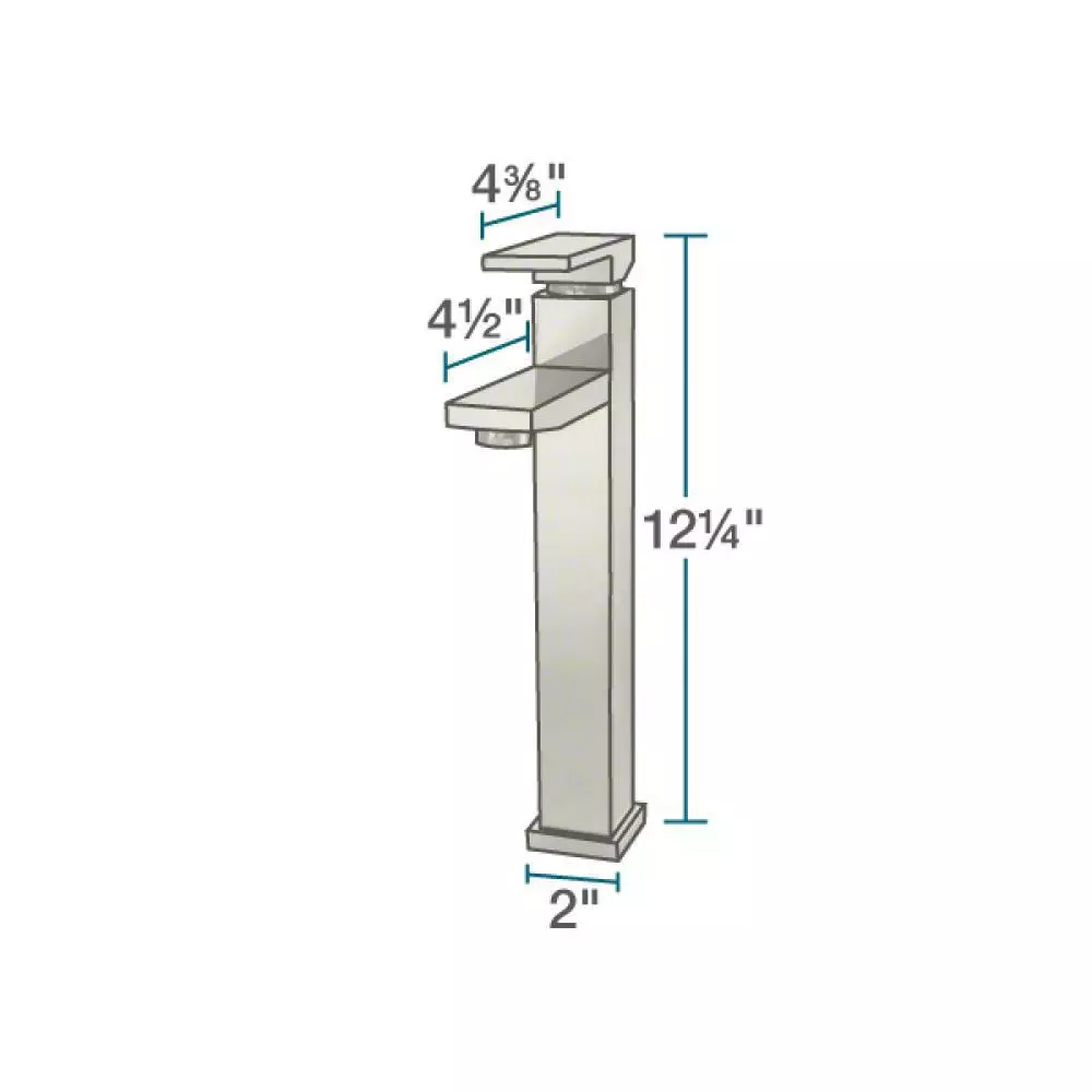 If a wide, low-profile display of porcelain is desired in the bath, this basin meets the criteria. It has a curvier shape and a broader expanse than many others; and comes complete with soft edges and graceful curves. The additional vitreous china coating on this model creates an even more impervious and sanitary surface than standard porcelain. With an overall measurement of 23-1/2 in. x 14-3/4 in. x 5-1/8 in., it will require a minimum-width cabinet of 24 in. The 721-BN, single-handle, vessel faucet offers tall orderly, contemporary styling. Standing at a 12-1/4 in. H with a 4-1/2 in. spout reach, its distinct edges and geometric angles flaunt a European air. The lone handle atop the 90° faucet enhances the fixture’s forthright appearance and ceramic disc cartridges assure long-term dependable operation. An attractive brushed nickel finish completes its distinctive appearance. The faucet is constructed without lead and is compliant with NSF (National Sanitation Foundation) standards, the Safe Drinking Water Act, the cUPC (Uniform Plumbing Code of the United States and Canada), the ADA (American Disabilities Act) and carries the EPAs WaterSense label. Additionally, a spring-loaded, vessel pop-up drain (vpud) is included, which opens and closes with a simple press to its attractive brushed nickel cap.