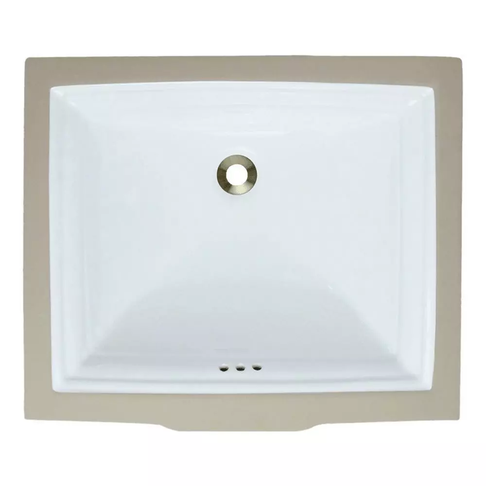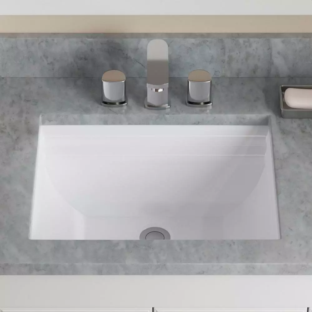 The U2450-White rectangular porcelain undermount sink is made from true vitreous China which is triple glazed and triple fired to ensure your sink is durable and strong. Undermounting a bathroom sink creates a sleek look and allows for more space on your countertop. The overall dimensions for the U2450-white are 21 1/2 in. x 18 3/8 in. x 9 1/8 in. and requires a 24 in. minimum cabinet size. Pop-up drains in a variety of finishes are available with this sink model. As always, our porcelain sinks are covered under a limited lifetime warranty for as long as you own the sink.