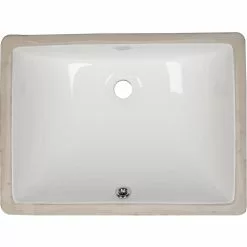 This White rectangle porcelain ceramic under-mount sink is made from true vitreous China which is triple glazed and triple fired to ensure your sink is durable and strong. Our elegant white color sink contains a yellow tint. Under-mounting a bathroom sink creates a sleek look and allows for more space on your countertop. The overall dimensions for the under-mount sink are 20 in. x 15 in. x 7-1/4 in. and require a 24 in. minimum cabinet size. This easy-to-clean sink combines the sleek look of an integrated basin with a timeless design that suits both traditional and modern bathroom decors.