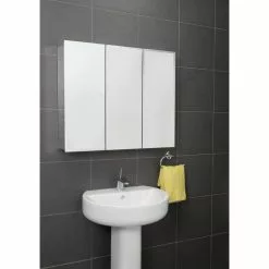 In Stock Hardwarestore Delivery 30 In. W X 30 In. H X 5 In. D Frameless Tri-View Surface-Mount Medicine Cabinet With Easy Hanging System In White