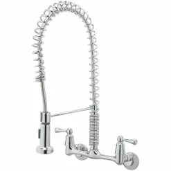 In Stock Hardwarestore Delivery 2-Handle Wall-Mount Pull-Down Sprayer Kitchen Faucet In Stainless Steel