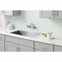 In Stock Hardwarestore Delivery 2-Handle Wall-Mount Kitchen Faucet With Soap Dish In Chrome