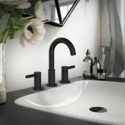 Jacuzzi Duncan Matte Black 2-Handle Widespread WaterSense Bathroom Sink Faucet With Drain