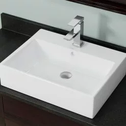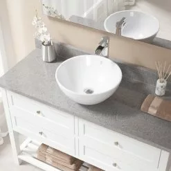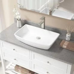 MR Direct Porcelain Vessel Sink In White With 718 Faucet And Pop-Up Drain In Brushed Nickel