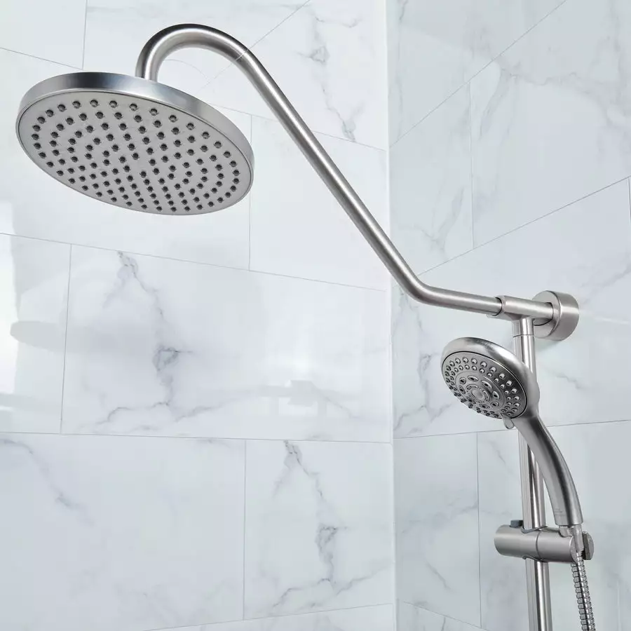 8-in rain shower head with soft tips to clear mineral buildup for long lasting performance