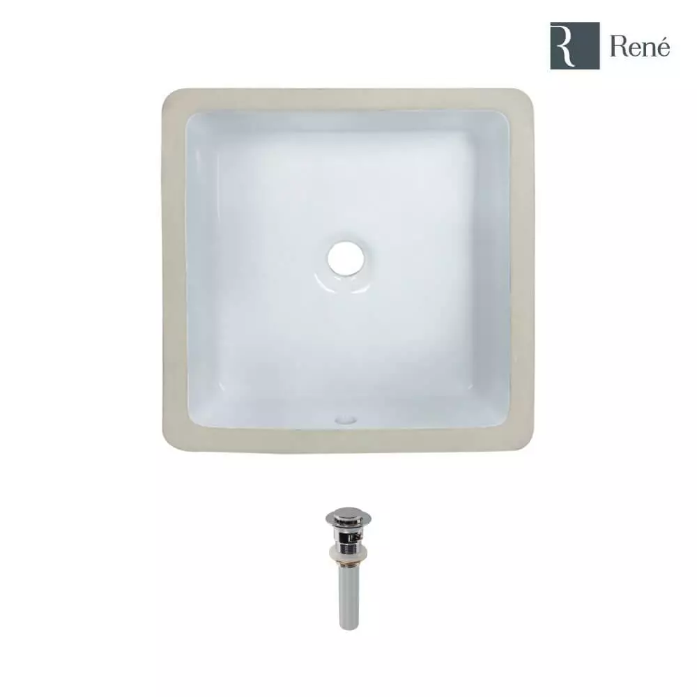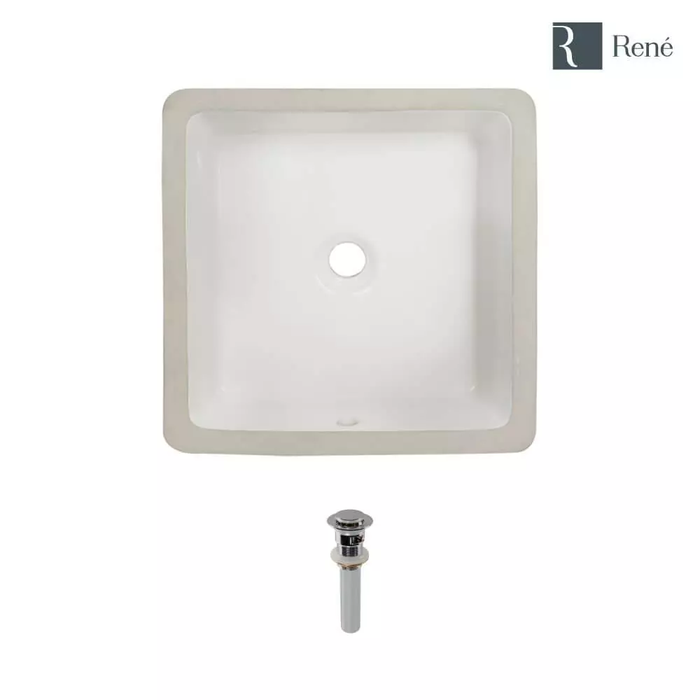 This attractive white, porcelain basin is designed to be mounted under the counter in a flush, positive, or negative reveal. The R2-1006-W is constructed of solid porcelain but with a special additional enamel added at the end of its firing, turning it into a hardened true Vitreous china. On its own, porcelain is both beautiful and durable, but the additional Vitreous china coating creates an even more impervious and sanitary surface. It measures 16 in. x 16 in. x 6-3/4 in., with a centerset drain and overflow. Included is a spring-loaded pop-up drain which can be opened or closed with a simple press to its chrome dome.