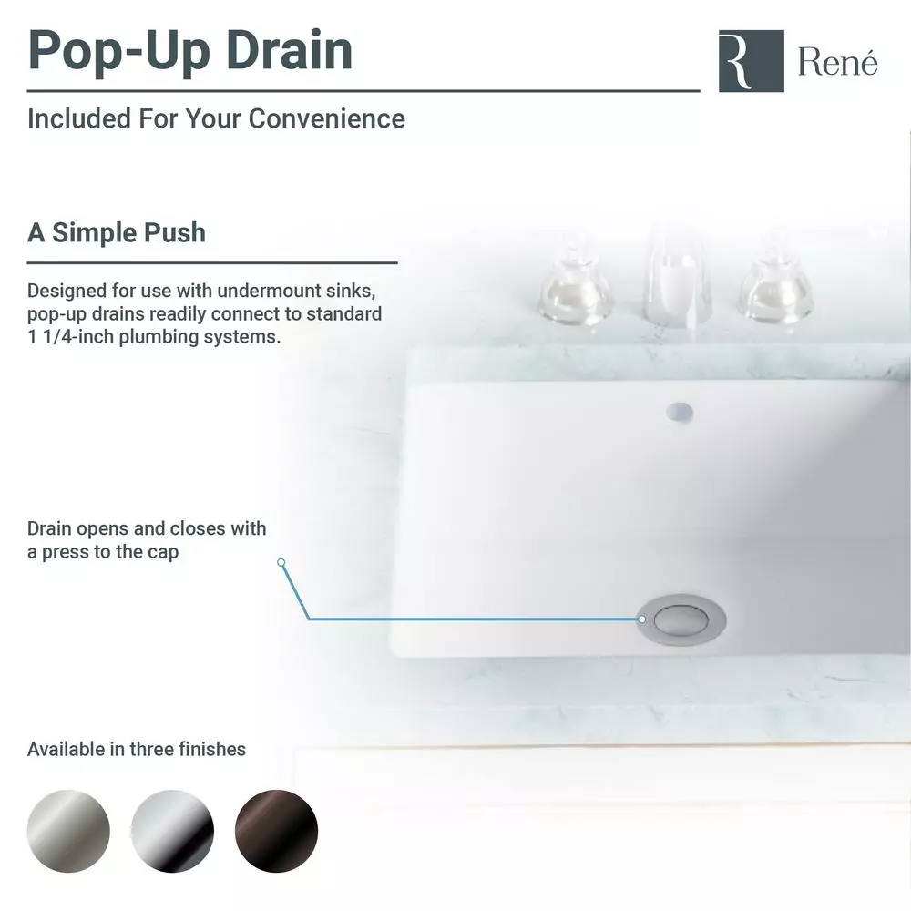- Supportive extras – standard pop-up drain is spring loaded to open or close with a simple push