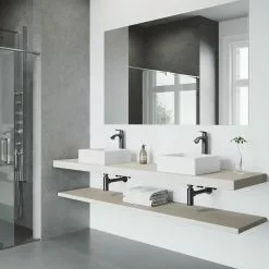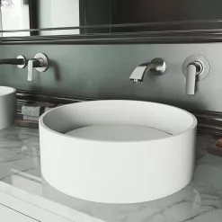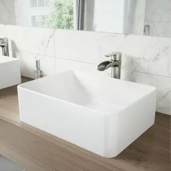 VIGO Amaryllis Matte Stone Vessel Bathroom Sink In White With Niko Faucet In Matte Gold