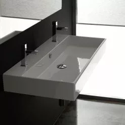 WS Bath Collections Unlimited 100 Wall Mount / Vessel Bathroom Sink In Ceramic White With 2 Faucet Holes