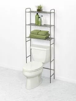 Zenna Home® 23″W X 60″H Satin Nickel Over-the-Toilet Storage Shelves