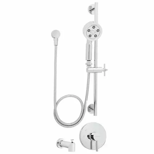 Includes slide bar, tub spout, 60-in metal hose and shower elbow