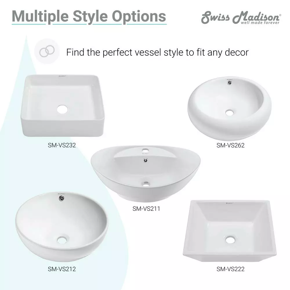 Satisfyingly elegant, the Claire Vessel Sink features a fresh look for classic white ceramic, in true minimalist fashion. Striking simple style, while maximizing precious bathroom space, makes counter independent sinks popular for powder rooms. Features smooth baked-on glaze and non-porous high-gloss finish, for durable scratch-resistant and easy to clean convenience.