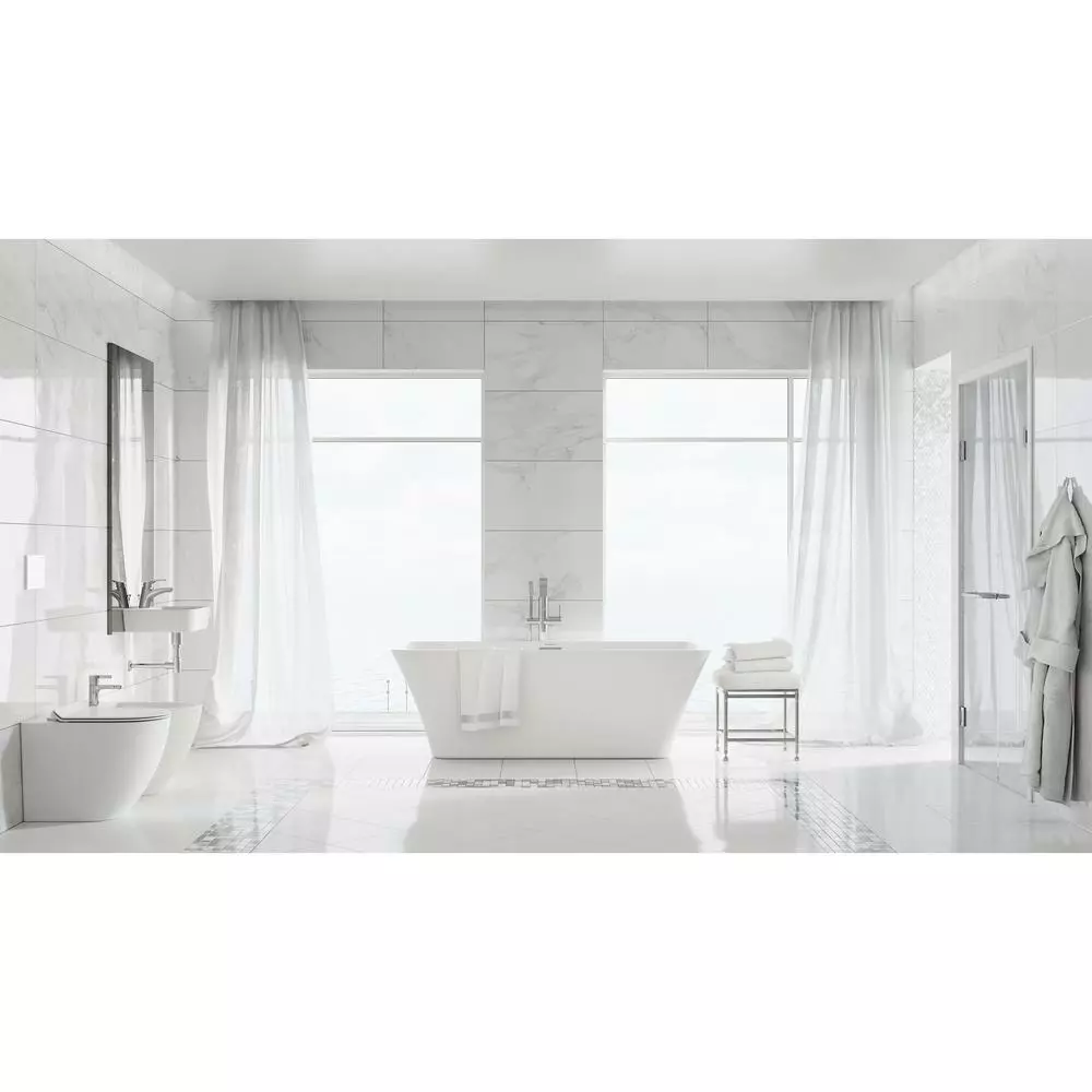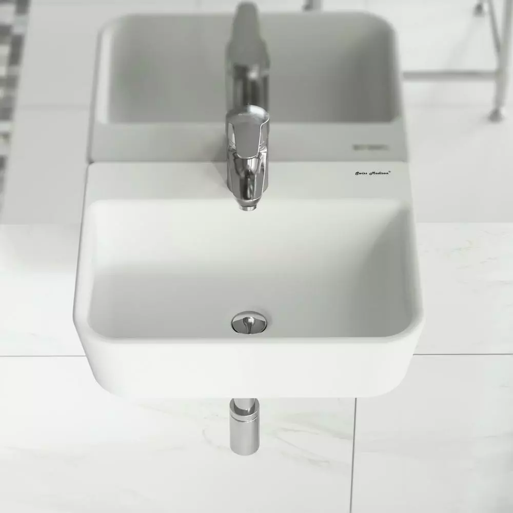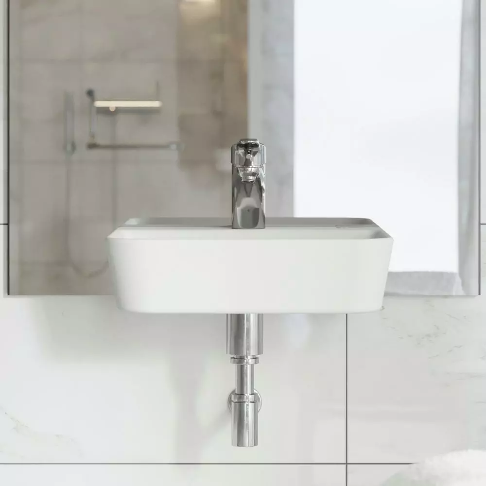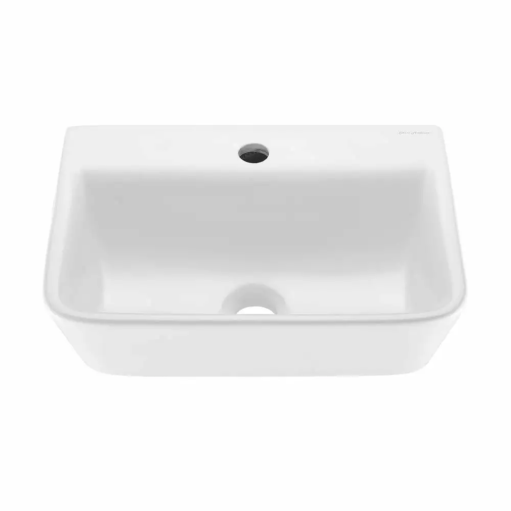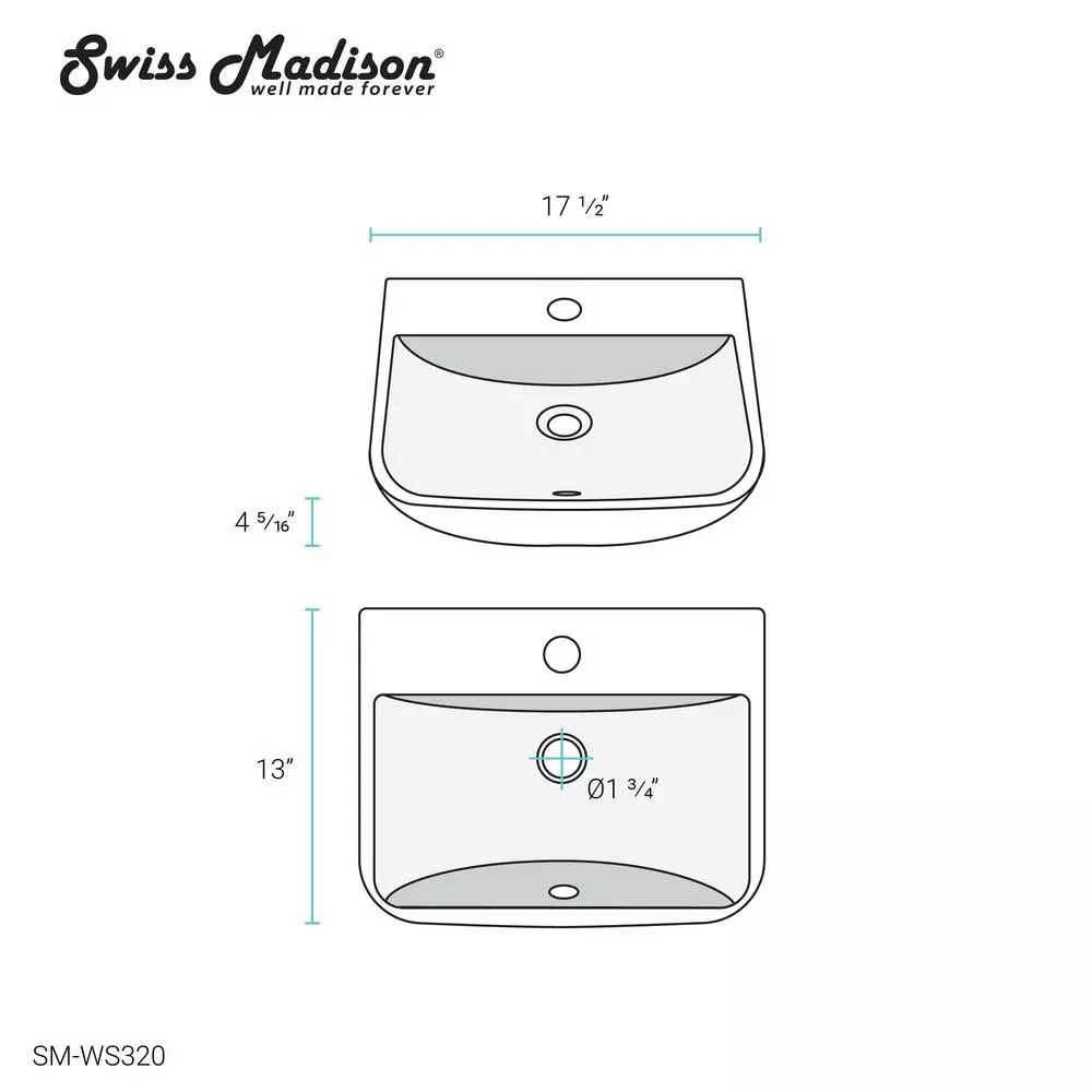Swiss Madison’s St. Tropez Ceramic Wall hung sink has a elegant design that can accompany any setting. It’s convenient and compact shape fits even the smallest of areas. Constructed of Vitreous China the wall sink is a durable and long lasting selection.