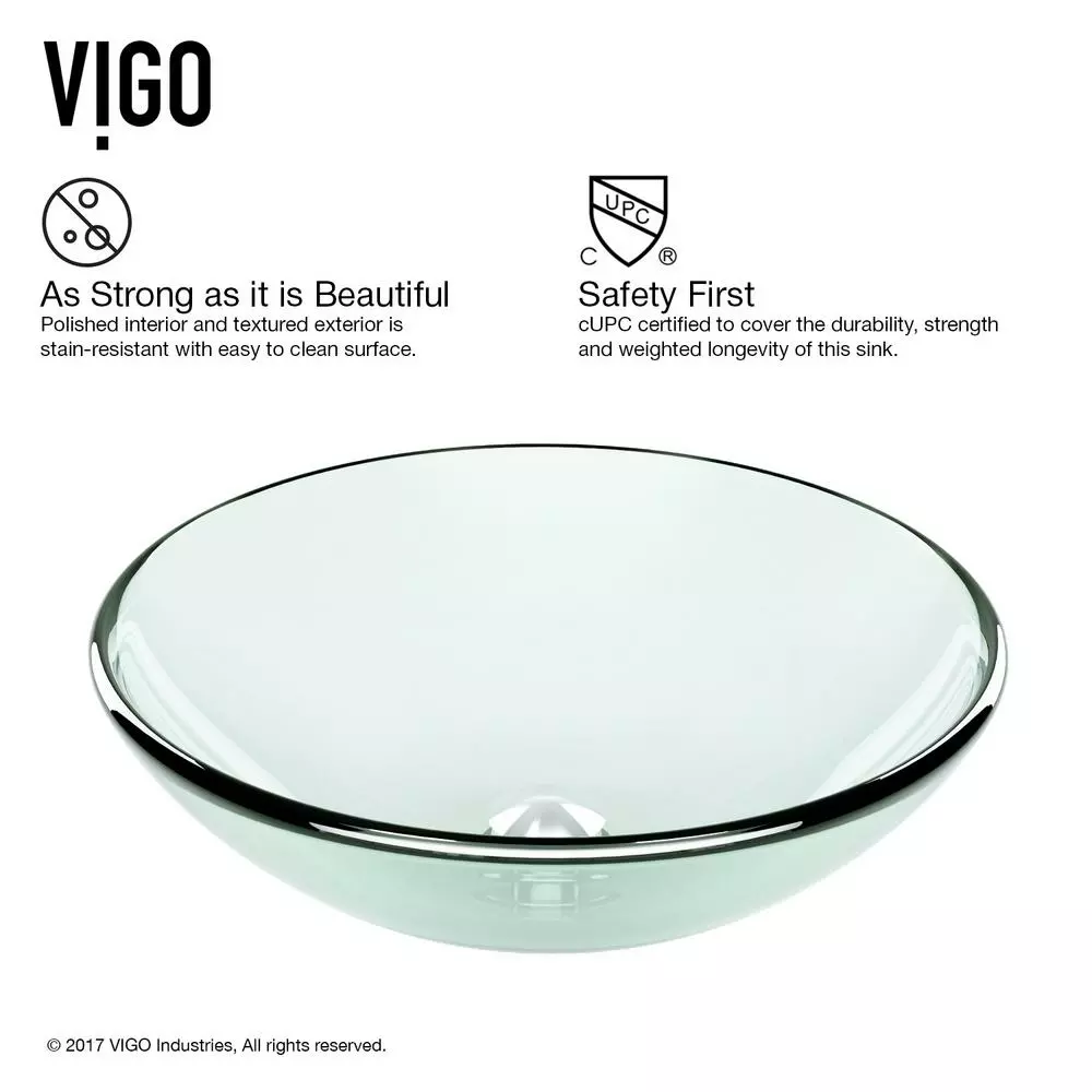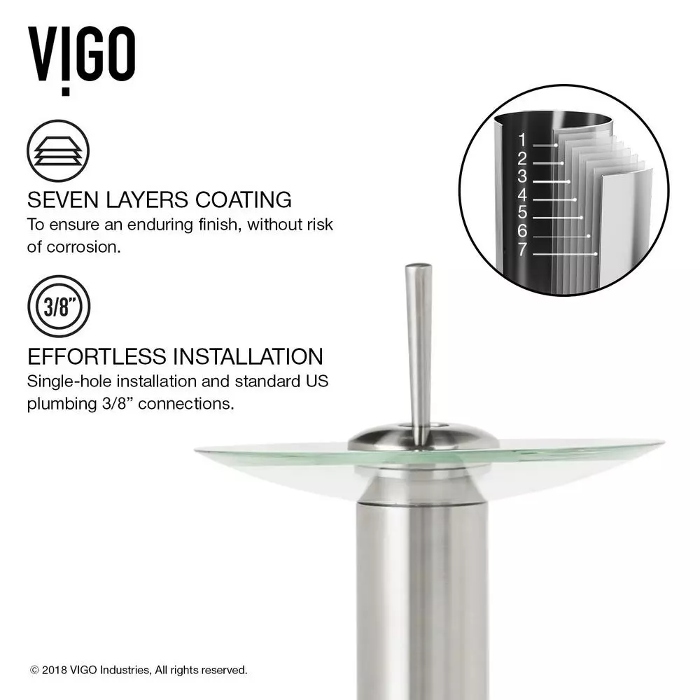 VIGO’s commitment to transparency goes beyond our exceptional customer service deliverables. The Crystalline Glass Vessel Sink and Waterfall Faucet Set features a crystal clear sink basin and matching tempered glass disc on the waterfall faucet. Durably built and made to last for years to come, this set resists scratches as well as impact. A solid-brass constructed faucet protects against rust, corrosion and tarnish to further enhance this set’s structure. A complementary pop-up drain in a finish matching that of the faucet completes this set.