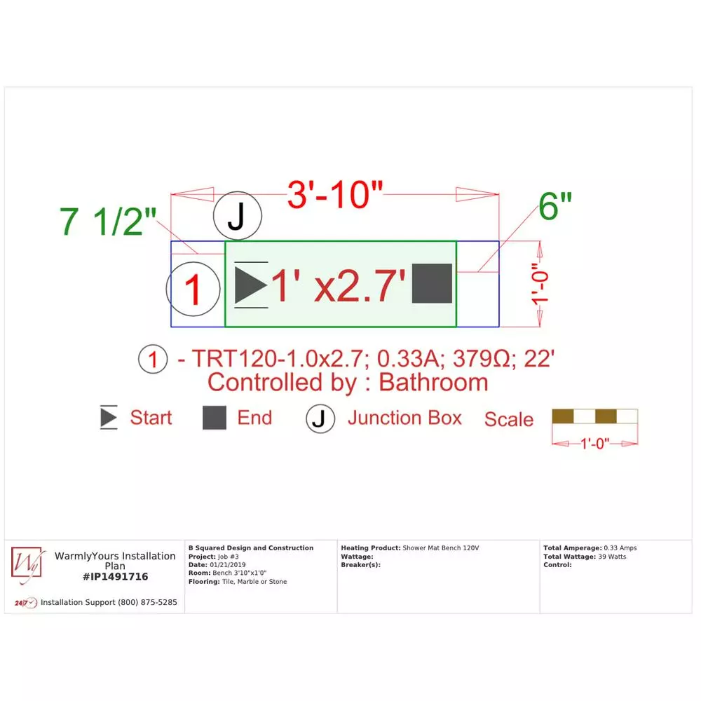 Create a spa experience right in your own home. Add a WarmlyYours TempZone™ Twin Shower Bench Mat to your shower. UL Listed and safe for installation in wet locations, these 120V, 11.5 in. X 32 in. mats produce 15 watts per sq. ft. to add gentle warmth and comfort to your shower bench. Fully backed by our unbeatable 25-year No Nonsense™ Warranty, the TempZone™ Twin Shower Bench Mat comes with a twin-conductor heating element and a 14 AWG cold lead.