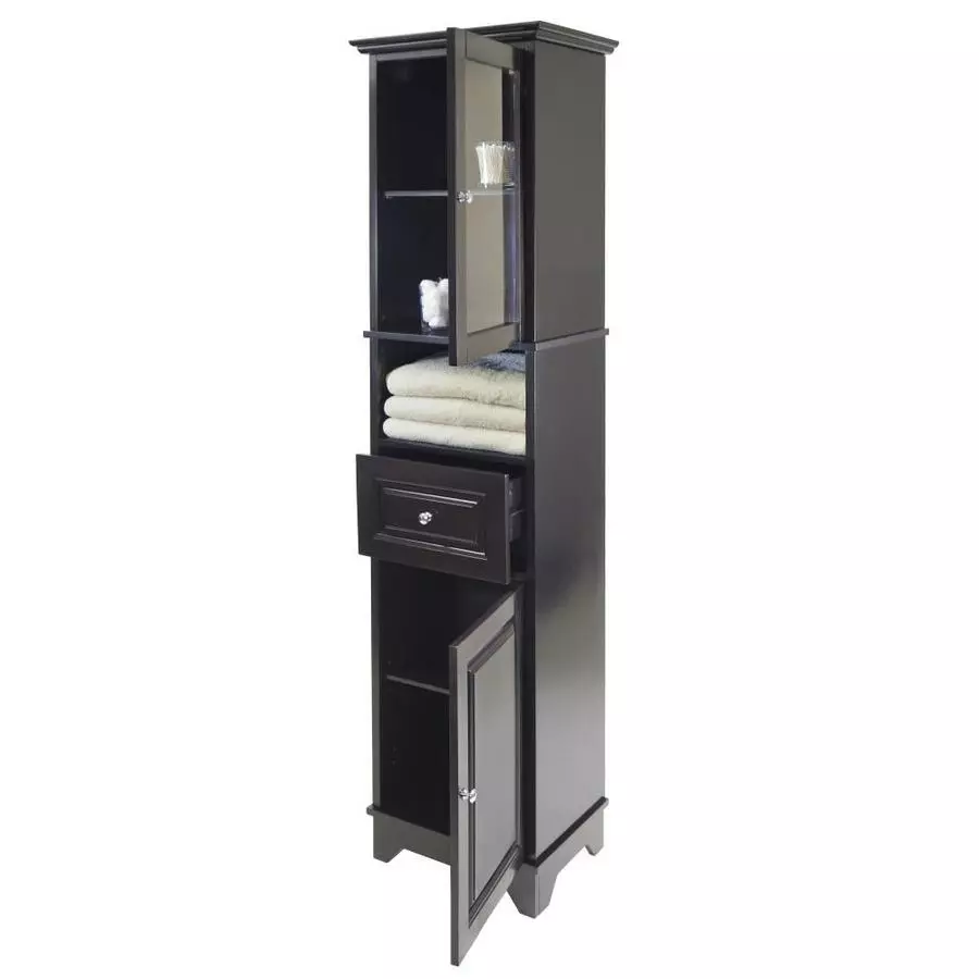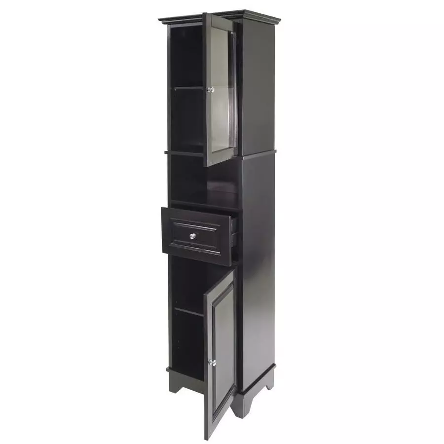 Upper cabinet has glass door and 1 adjustable shelf