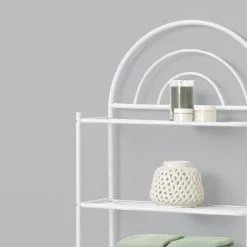 Bottom shelf is 34 in. from ground, allowing spacesaver to fit over most standard toilets
