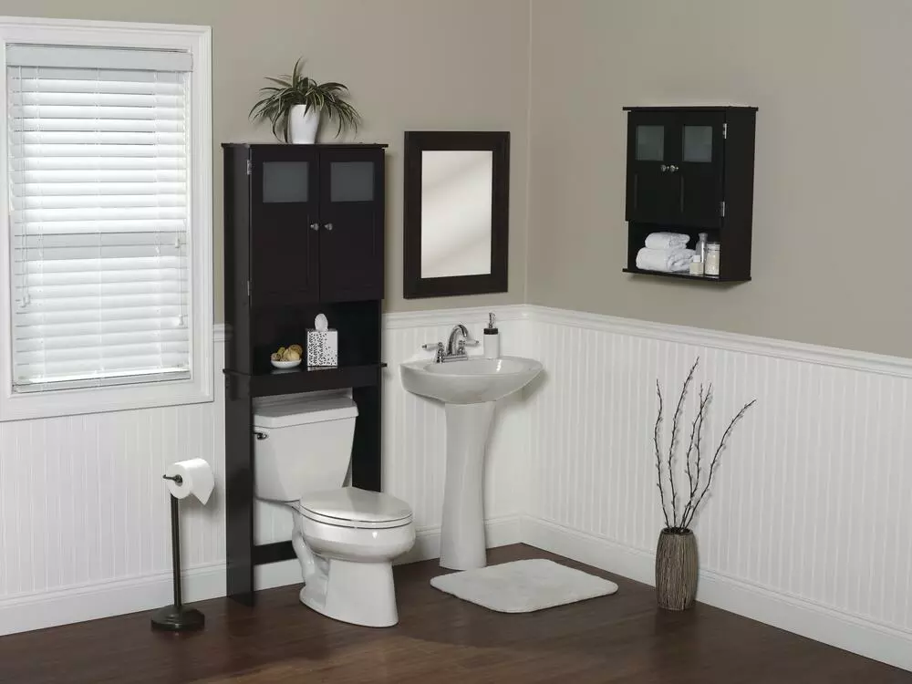 The Wall Cabinet creates valuable storage inside any bathroom. The cabinet has two shelves (one adjustable) behind its closed doors, and also has an open shelf for displaying decorative items. The cabinet is easy to assemble and install.