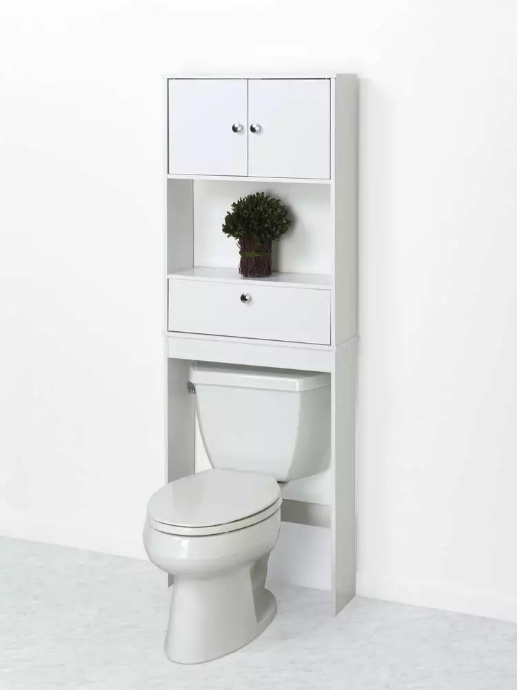 The Drop Door Spacesaver provides an attractive storage solution for any bathroom with limited space. Using the normally wasted space above a toilet, the spacesaver has both hidden and open storage for bath items and decorative accessories. Assembly is easy, with step-by-step instructions included