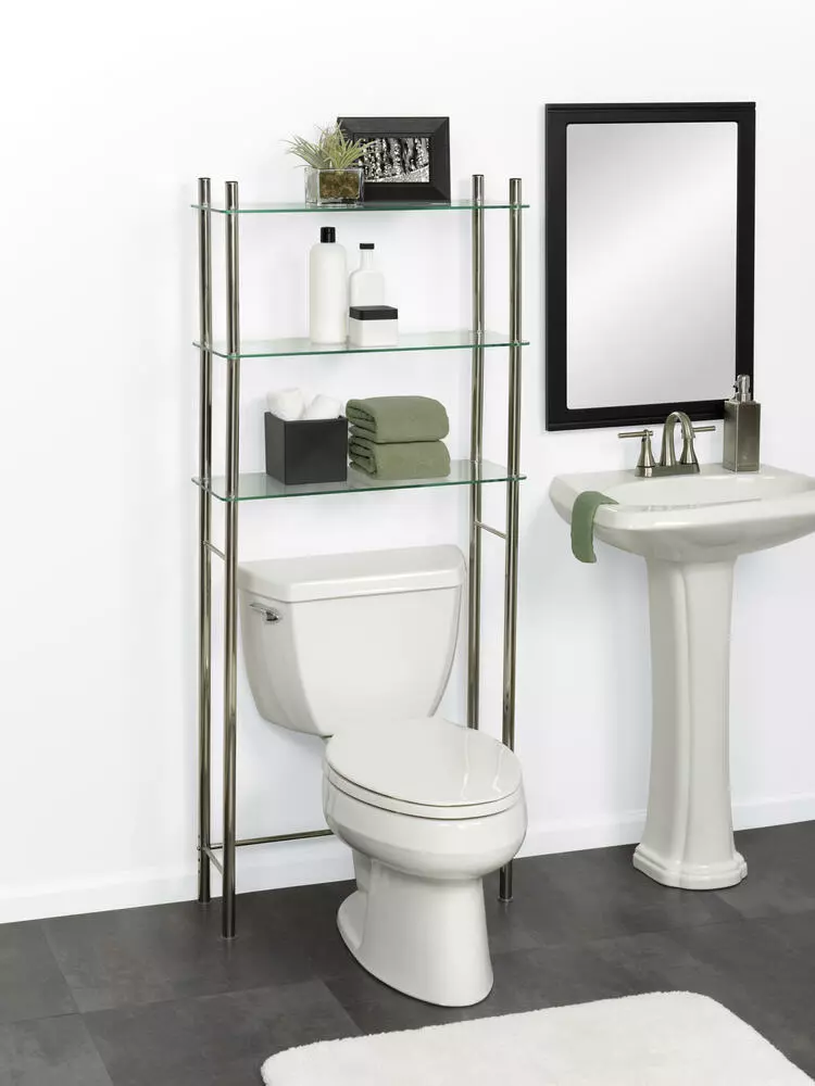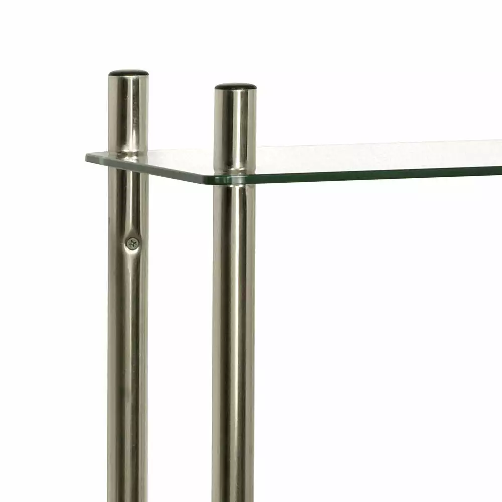 With its tempered glass shelves and sturdy metal construction, the Floating Glass Spacesaver provides an attractive and functional storage solution for any bathroom. The spacesaver’s innovative TwistFit design allows for quick and easy assembly. The spacesaver has a rich and rust-resistant brushed nickel finish.